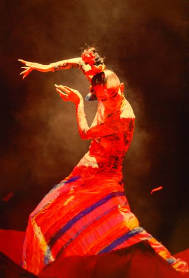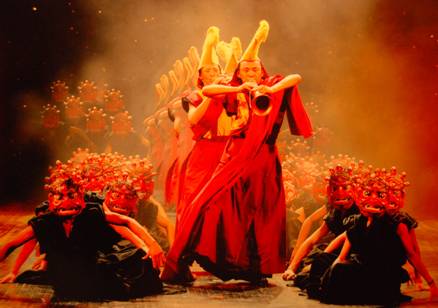 大型原生态藏族歌舞乐《藏谜》,是一台以最新舞台灯光、音响、舞美等高科技技术为表现手段,以承载千年藏民族优秀歌舞文化精髓为核心内涵的优秀舞台精品。节目内容以藏族阿妈朝圣之旅为串接线索,根据老阿妈的所见所闻,生动再现了六弦琴、长袖舞、打青稞、牦牛舞、打阿嘎等藏族代表性民间歌舞文化,以及沐浴节、赛装节等藏族传统节日的喜庆、隆重场景,并把庄重神秘的宗教法会巧妙地与舞蹈和器乐进行结合,使节目中不但保留了宗教法会的庄重感、神秘感,而且把一种宗教活动进行了艺术的再现,使它从“法会”创作成一个完美的“舞蹈”。
