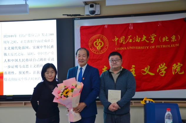 为深入学习马克思主义经典,增强师生政治意识,培养新时代人才,11月7日下午,中石大马克思主义学院举办“名师讲坛”活动,邀请中国农业大学马克思主义学院教授李明,在四教206与学院师生共同阅读《共产党宣言》。学院党委副书记方百会,副院长刘乾,教师白春阳和78名同学参加此活动。