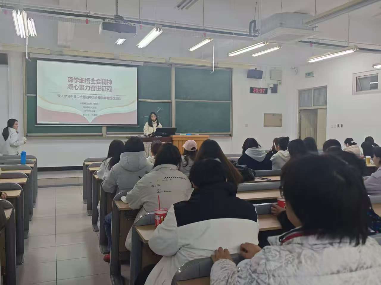 思政24-1班的同学们以饱满的热情投入到全会精神的学习热议中。他们从初步接触专业课程的体会出发,结合全会提出的新发展理念,探讨了青年学子如何夯实理论基础、担当时代重任。作为新时代思政学子,他们表示践行全会精神不仅要深学细悟理论,更要在社会实践中传递正能量,在基层服务中践行社会主义核心价值观。