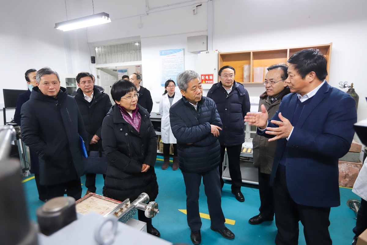 陈宝生部长一行首先来到油气资源与探测国家重点实验室,听取了实验室主任、中国工程院院士、副校长李根生关于实验室整体建设、核心技术、代表性科研成果等情况介绍,重点考察了压裂液摩阻测试实验室、工程物模实验室、导流与液流转向实验室和非常规储层物性评价实验室,对实验室瞄准科学前沿、服务国家重大战略需求的发展定位及取得的丰硕成果,表示肯定和赞赏。