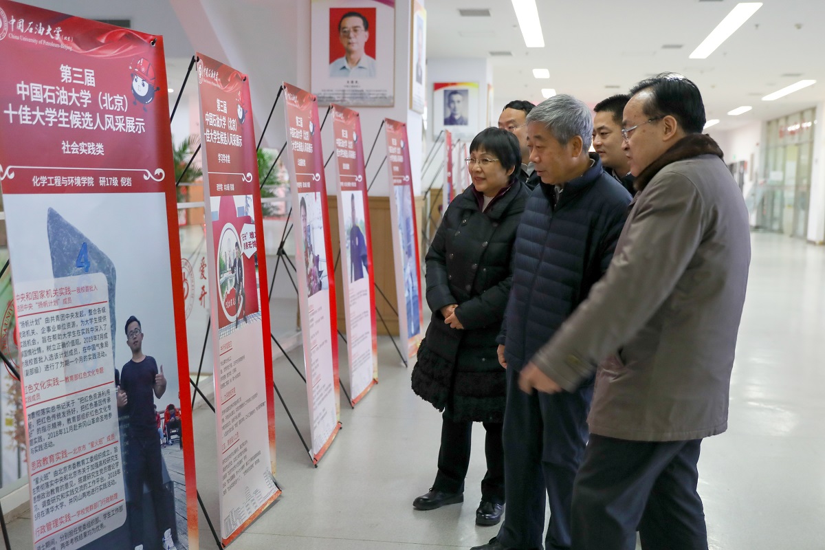 校园里细雪飘飞,学生活动中心暖意融融。集聚学生教育、服务、管理、实践等多种功能于一体的学生活动中心的规模和运行方式,给陈宝生部长留下了深刻印象。在这里,他在党委书记山红红、校长张来斌的陪同下,参观了“艰苦奋斗”国庆70周年群众游行活动主题展、校园文化用品中心和国际视野中心,观看了十佳大学生风采展,并与正在进行理论研学的学生团队进行了亲切交流。