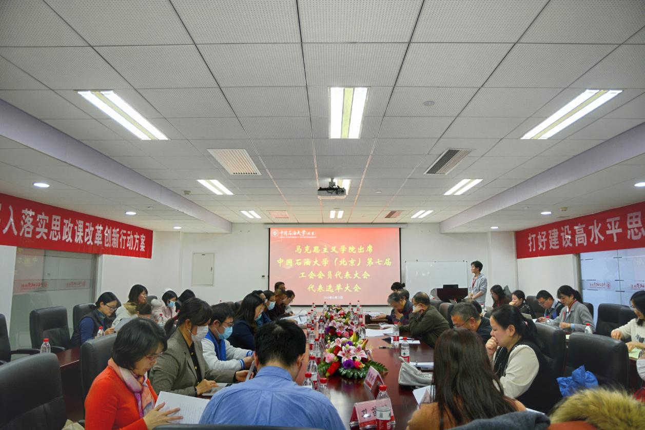 11月23日下午,马克思主义学院出席中国石油大学(北京)第七届教职工代表大会代表、第七届工会会员代表大会代表选举大会在主楼A1018会议室召开,大会由马克思主义学院第三届工会主席张冠军主持。