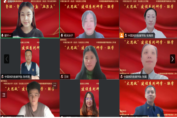 为响应习近平总书记“大思政课我们要善用之”的号召,推动“大思政课”建设及实践教学改革创新,中国石油大学(北京)马克思主义学院、中华女子学院马克思主义学院和中国消防救援学院政治工作系于3月27日开展联学活动,三校共同研讨“大思政”教学新模式。