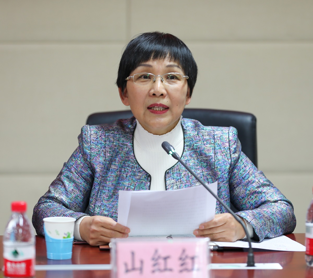 山红红在致辞中代表学校向三位新晋校友院士表示热烈祝贺。她说,三位院士是石大的杰出校友,是母校的骄傲和荣光,他们的当选让全校师生深受鼓舞和振奋。三位院士在各自研究领域潜心钻研、艰辛探索,作出了系统性、创造性的成就和贡献,他们身上体现出的实事求是、艰苦奋斗、爱国奉献、开拓创新的优秀品质正是石大精神的精髓,也深深地感染和激励着全校师生。她指出,当前学校正在深入开展“不忘初心、牢记使命”主题教育,召开此次座谈会,就是要号召全校师生以三位院士为学习楷模、身边榜样,学习他们不忘初心、牢记使命的责任担当,学习他们坚持不懈、勇攀高峰的执著追求,传承弘扬石大精神,厚积薄发,艰苦奋斗,共同为国家能源事业和经济社会发展作出更大的贡献。
