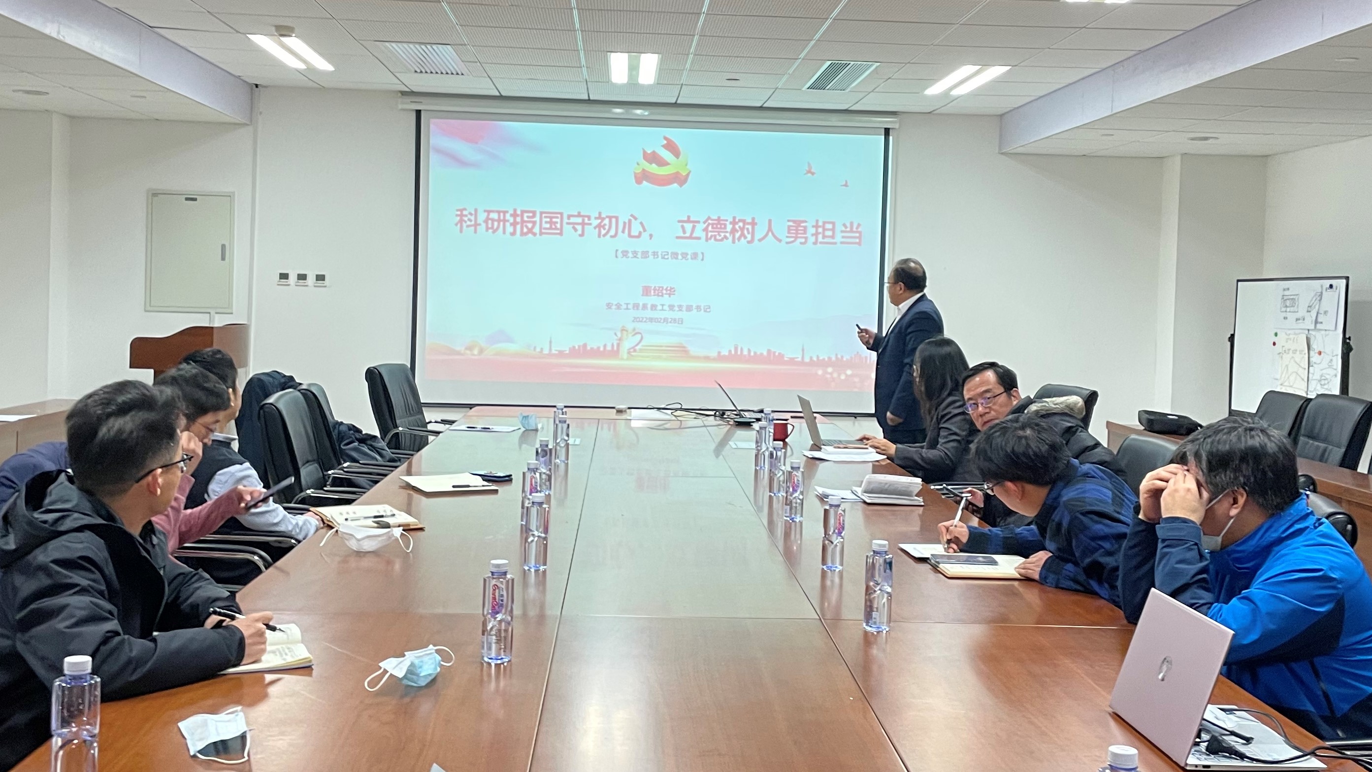 为深入学习贯彻习近平新时代中国特色社会主义思想,继续把党史学习教育引向深入,更好把握和运用党的百年奋斗历史经验,践行为党育人、为国育才的初心使命,安全学院党委举办了第一届党支部书记微党课大赛。学院教工和学生党支部书记微党课评选活动分别于2月28日和3月3日在主楼A520会议室举行,学院党委书记孙为、党委副书记赵凯、全体教工党支部书记和学生党支部书记参加了本次活动。