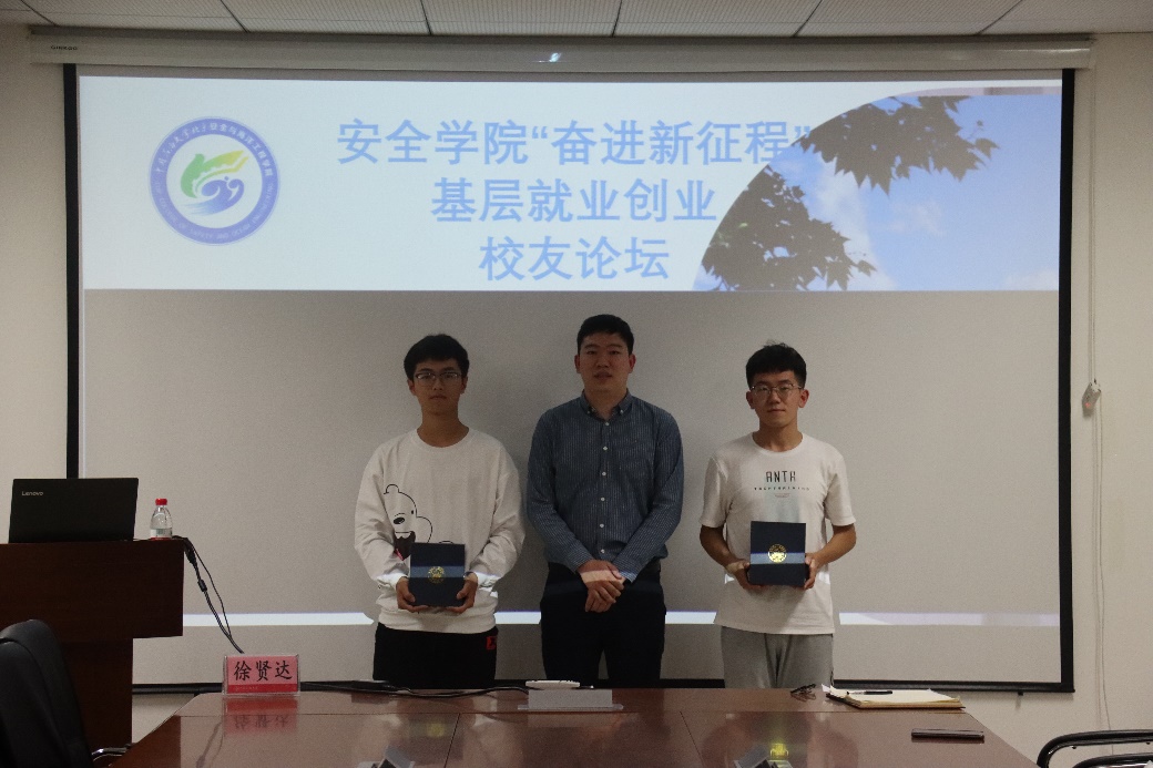 为进一步加强就业创业教育工作,帮助学生树立正确的价值观、择业观,合理规划好自身职业发展,10月6日下午,安全学院通过线上线下相结合的方式,在主楼A520会议室成功举办“奋进新征程”主题校友论坛活动。2015届安全技术及工程专业硕士毕业生徐贤达应邀做分享交流,学院共100余名学生参与了此次活动,活动由安全学院辅导员于晓鹏主持。