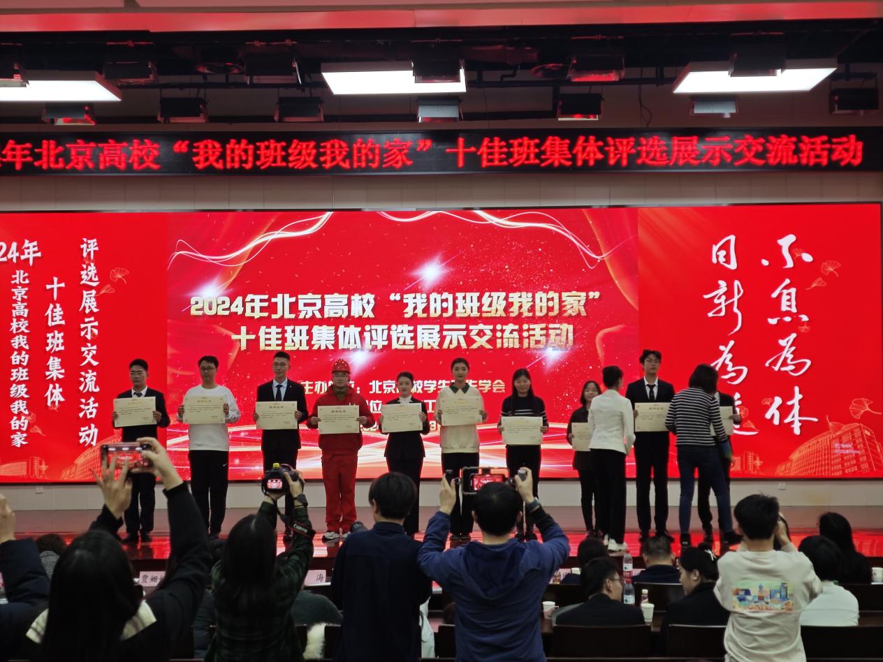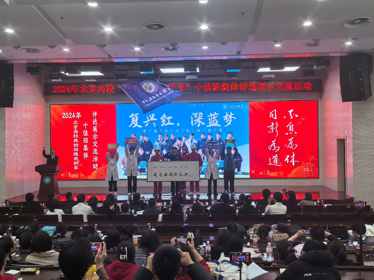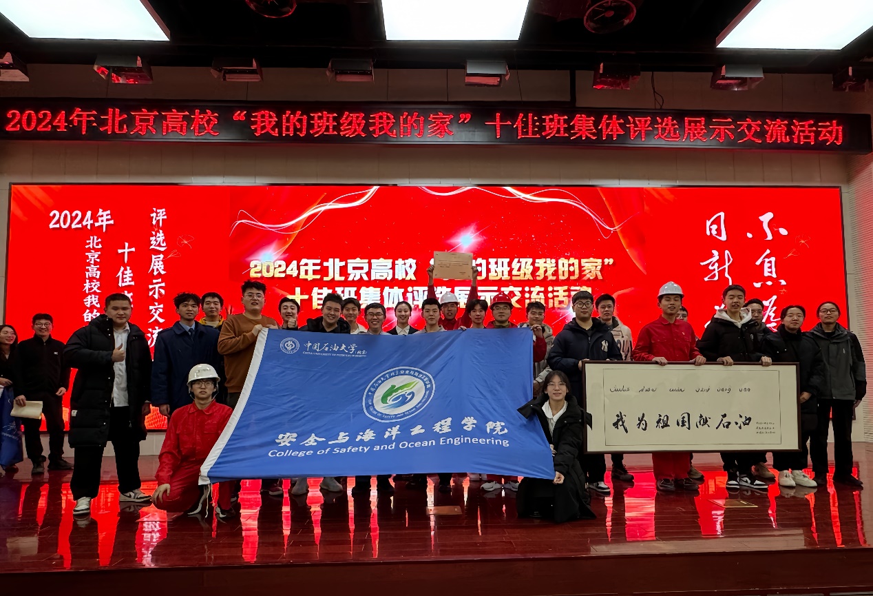 12月23日,由北京高校学生工作学会主办的2024年北京高校“我的班级我的家”十佳班集体评选展示交流活动在北京工业大学举行。中国石油大学(北京)安全与海洋工程学院海洋油气工程硕研23-2班从全市58所高校的288个参评班级中脱颖而出,获评2024年北京高校“我的班级我的家”十佳班集体荣誉称号。