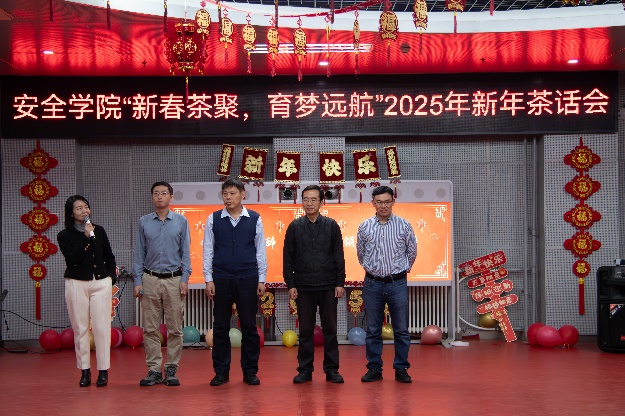 茶话会上,学院党委书记孙为,院长杨进,党委副书记赵凯,副院长郑文培、张玉等领导班子成员发表了热情洋溢的新年贺词,代表学院向全院教职工和长期关心支持学院发展的各级领导表示衷心感谢,代表学院给全院教职工送上新年的祝福,对新教师加入安全学院大家庭表示欢迎。