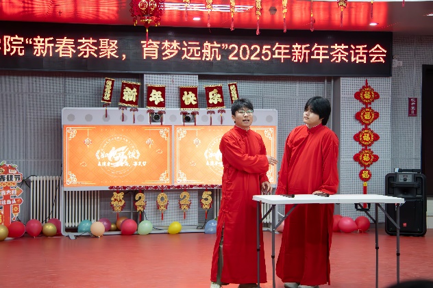 海工、安全两个系、新入职教师、学院办公室和学生办公室精心准备了歌曲、舞蹈、小品、相声、古筝演奏等丰富多彩的节目,并组织大家进行小游戏和抽奖环节,为茶话会增添了欢声笑语。老师们多才多艺的表演引得全场喝彩,掌声雷动。