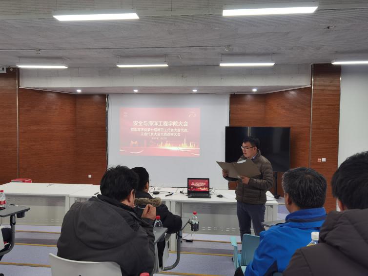 11月27日,安全与海洋工程学院在安全科技楼召开学院全体教职工大会,暨选举出席学校第七届教职工代表大会、工会会员代表大会代表选举大会。学院领导班子及全体教职工参会。大会由学院党委副书记、工会主席赵凯主持。