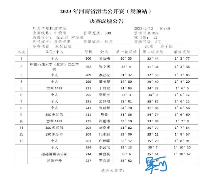 2023年2月12日,2023年河南省滑雪公开赛嵩顶站经过两天的角逐,4个单项的冠亚季军全部产生,本项比赛的落幕,也标志着第九届全国大众冰雪季暨第七届河南省大众冰雪系列活动全部结束,完美收官。中石大安全学院在此次滑雪公开赛中荣获优秀组织奖!安全学院22级研究生张宁博获男子双板项目亚军!