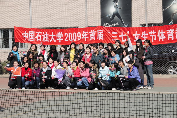 为了活跃校园文化生活,加强我校女生之间的友谊交流,彰显我校女生风采,构建和谐校园。2009年3月7日上午,体育教学部在我校网球场举办了中国石油大学首届“女生节”体育趣味比赛。
