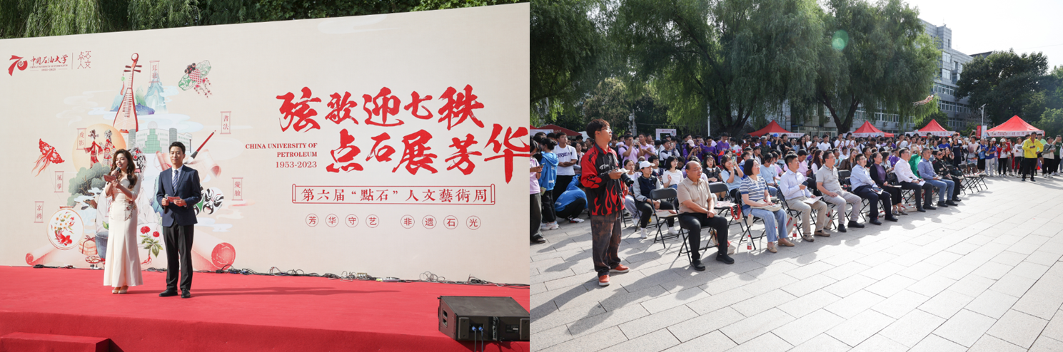 为传承中华优秀传统文化,在迎接学校70周年校庆之际,中国石油大学体育与人文艺术学院联合学校多部门推出第六届“点·石”人文艺术周“弦歌迎七秩 点石展芳华”“ 非遗石光,芳华守艺 ”活动,进一步涵养石大学子素养,渲染石大人文氛围,坚定文化自信,让中石大遇见非遗,共赴秋日之约。9月28日下午,“非遗石光,芳华守艺”活动在身披节日盛装的校园内举行。学校党委副书记蒲俊霖,党委宣传部、党委教师工作部、团委、体育与人文艺术学院等职能部门负责人、师生代表现场参加活动。