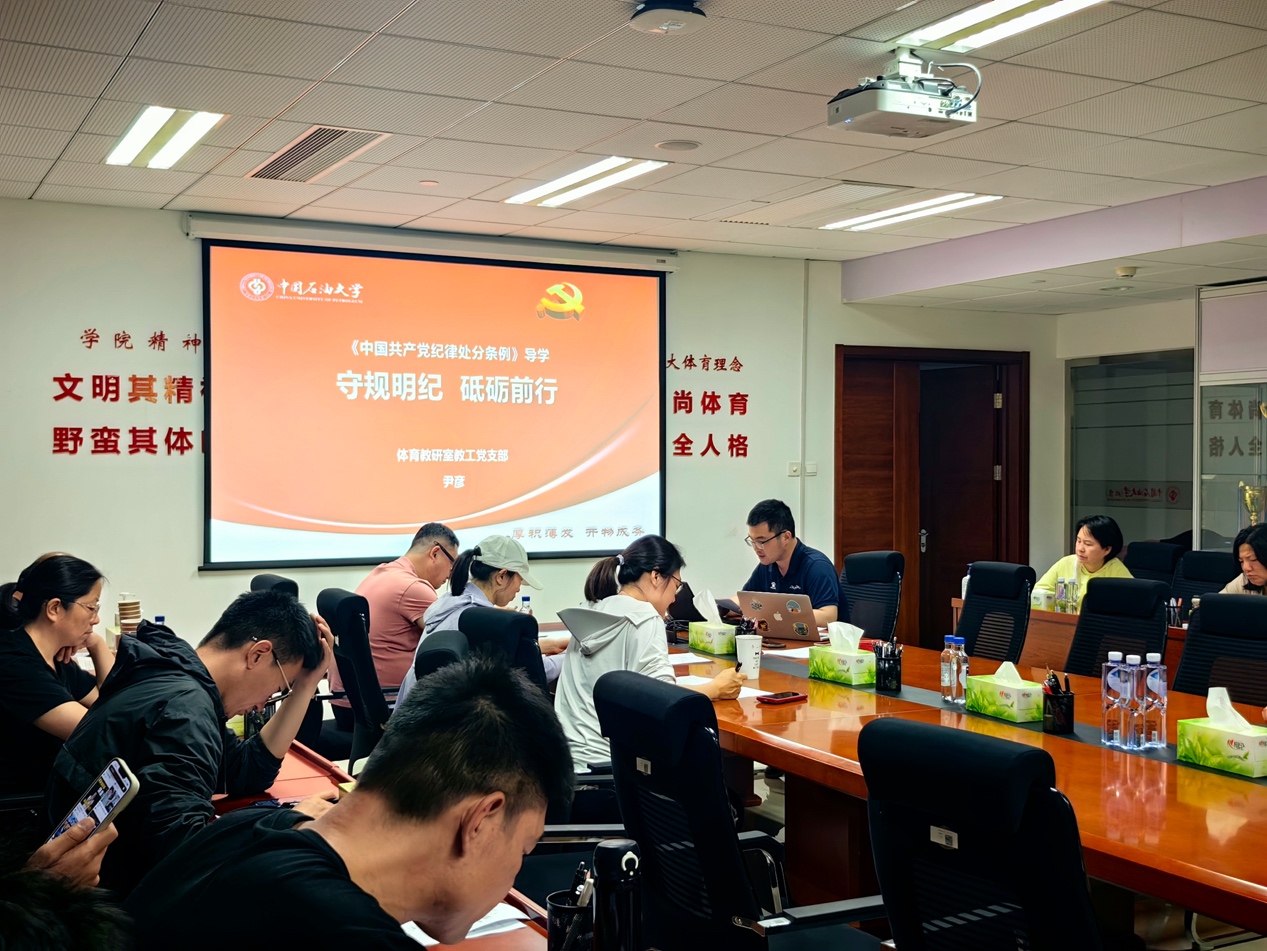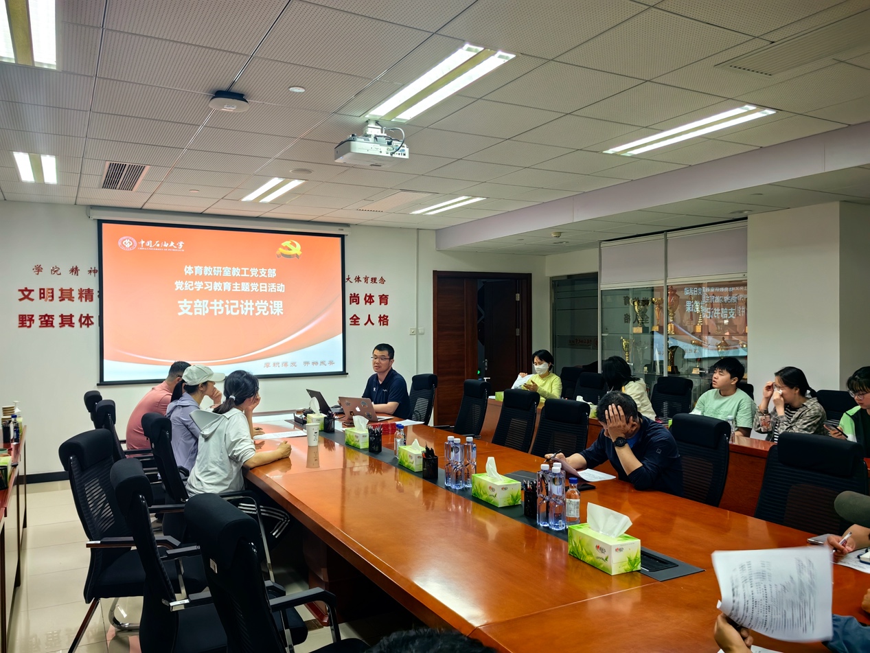 会上,体育教研室教工党支部书记尹彦带领大家学习了《中共中央办公厅关于在全党开展党纪学习教育的通知》、《中共教育部党组关于在直属高校开展党纪学习教育的通知》、《中共北京市委办公厅印发关于在全市开展党纪学习教育的实施方案的通知》和《中国石油大学(北京)关于在全校开展党纪学习教育的实施方案》等相关文件精神,通过深入浅出地解读,不仅让老师和学生们对党的纪律规定有了更加全面、深刻的认识,也进一步增强了他们的党性修养和纪律意识,为推动全面从严治党工作的深入开展奠定了坚实基础。