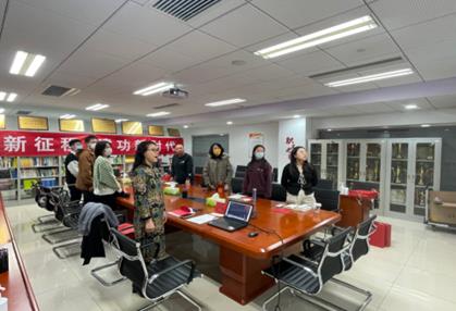 全体支部党员重温红色歌曲《永远跟党走》《没有共产党就没有新中国》