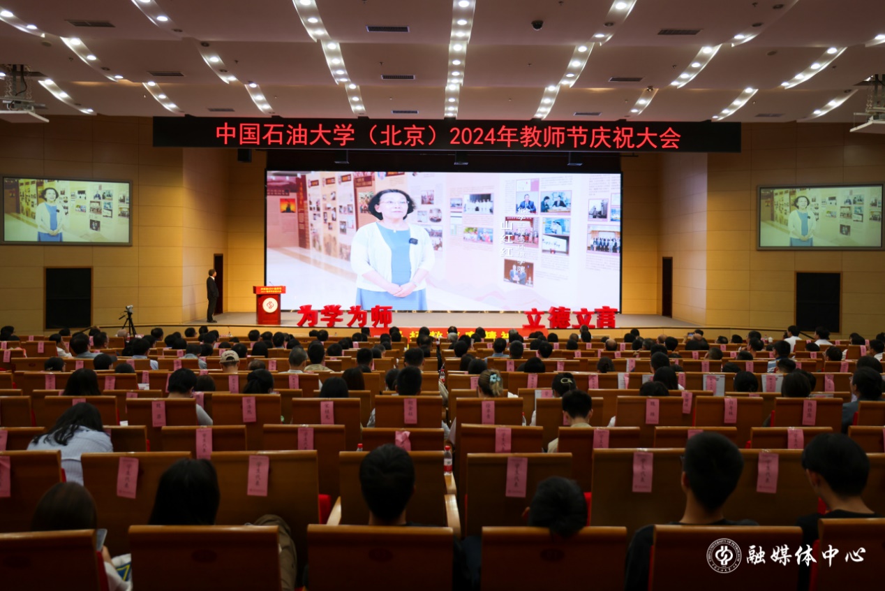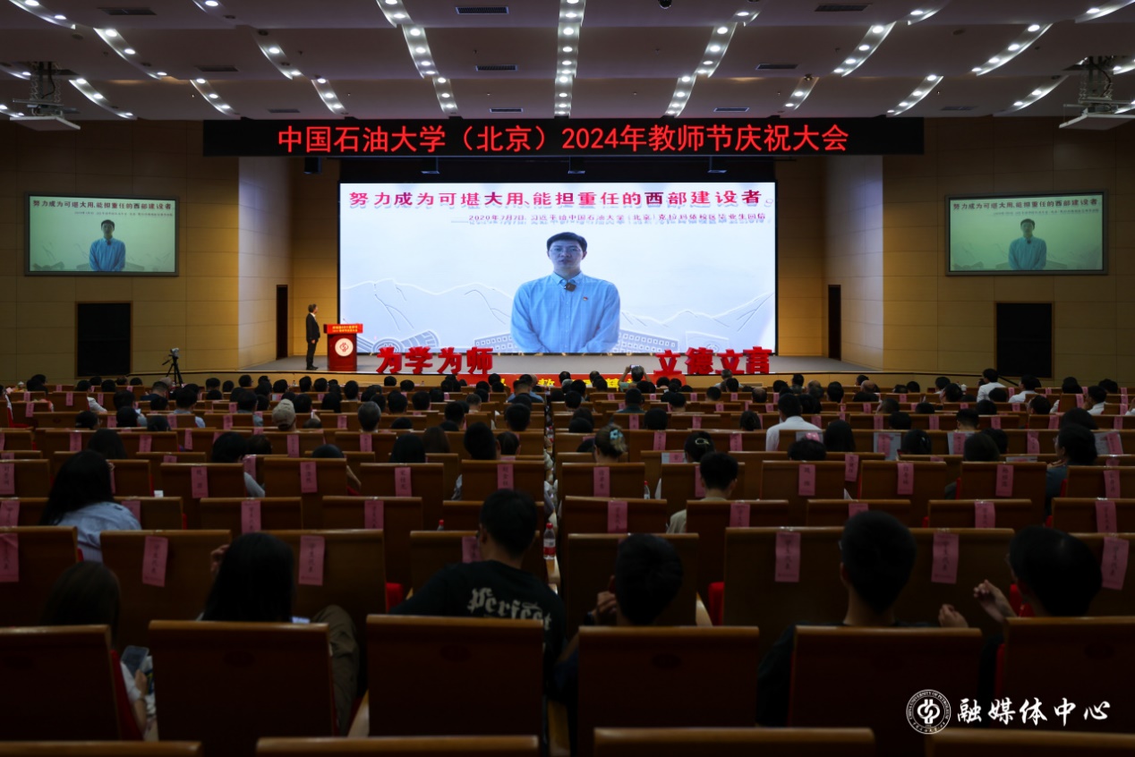 9月10日下午,中国石油大学(北京)2024年教师节庆祝大会在中油大厦三层报告厅隆重举行。校领导王同奇、金衍、鲍志东、韩克飞、文永红、刘植昌、张广清与受表彰教师代表、荣休教师代表、全体处级干部、全体新入职教师、一线教师代表和学生代表500余人欢聚一堂,共同见证中石大教师的光荣时刻,克拉玛依校区干部及师生代表在分会场通过线上参会。校长金衍主持庆祝大会。