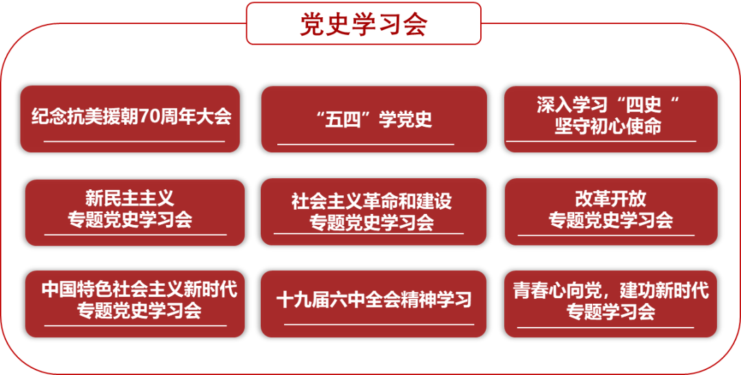 为了引导团员积极向党组织靠拢并增加团支部的凝聚力,团支部组织了30余场党史学习会,与所属第一党支部开展20余次党团联合活动,40余次团日活动。