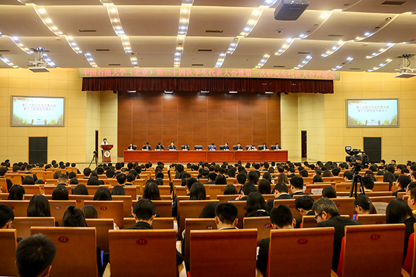 大会听取了《中国石油大学(北京)第二十三届学生会工作报告》及《中国石油大学(北京)第二十四届研究生会工作报告》。报告分别回顾了学生会与研究生会过去两年的工作,并对未来工作作出展望,希望石大学子树立远大理想,争做“四可”青年,为建设石油石化学科领域世界一流研究型大学努力奋斗,为实现中华民族伟大复兴的中国梦贡献力量。