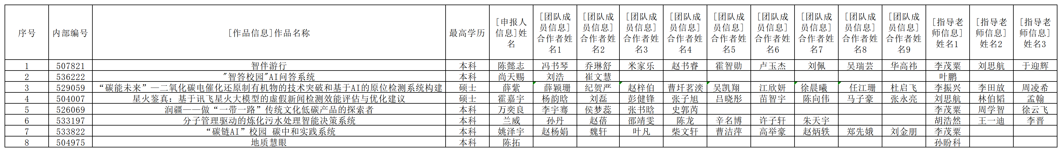 拟推荐8件创意赛作品、51件应用赛作品参加第十九届“挑战杯”全国大学生课外学术科技作品竞赛“人工智能+”专项赛。现将项目名单公示如下。