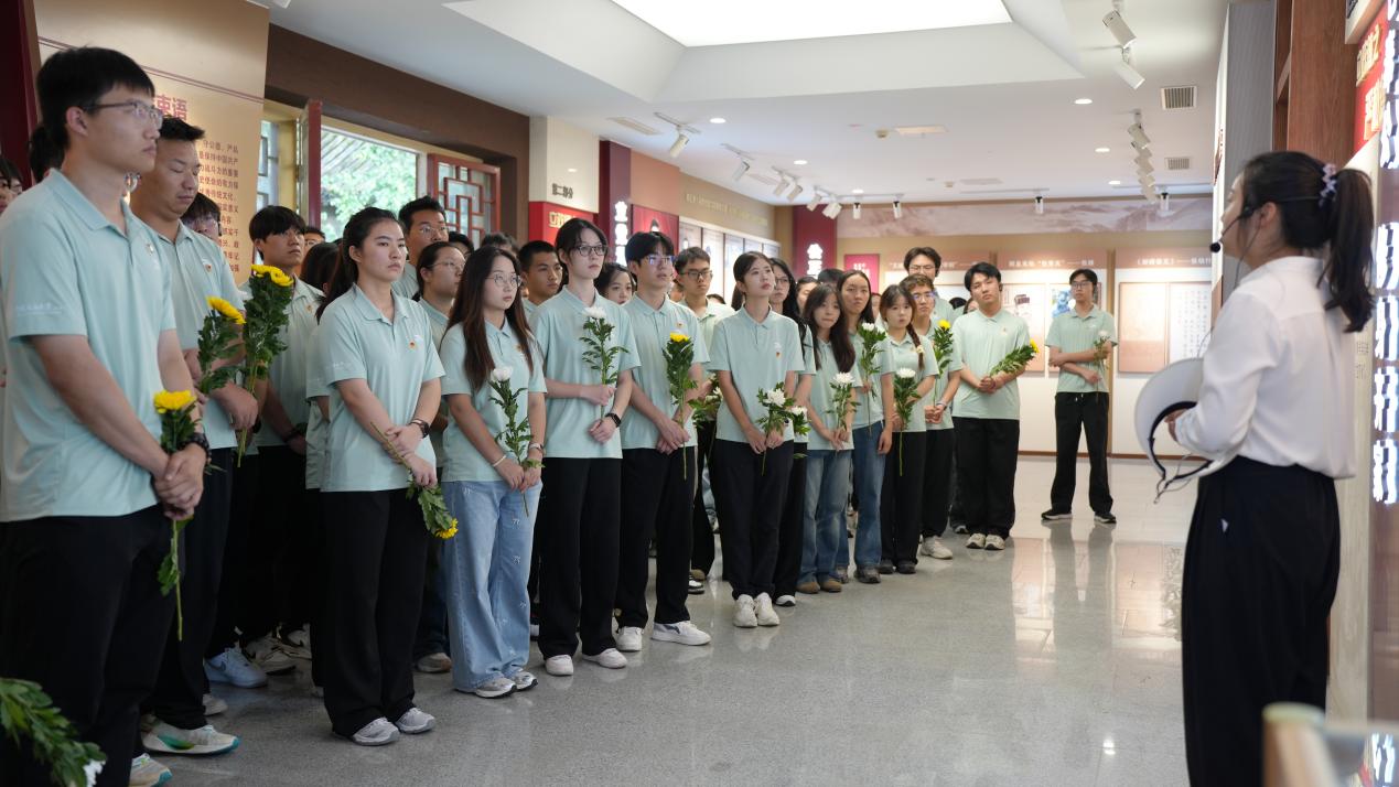 8月14日,青年怀着崇敬之心,步入庄严肃穆的中国人民抗日战争纪念馆。在讲解员的引导下,同学们缓缓穿行于记录烽火岁月的展厅。一张张珍贵的历史图片、一件件承载民族记忆的文物、一段段感人至深的英雄事迹,都在无声诉说着中华民族那段不屈抗争的壮丽史诗。参观结束后,同学们在展馆门前整齐列队,精神抖擞地共同唱响《歌唱祖国》,嘹亮而深情的旋律在纪念馆前回荡,歌声穿越时空、连接历史与当下,振奋着每一位爱国青年的精神。