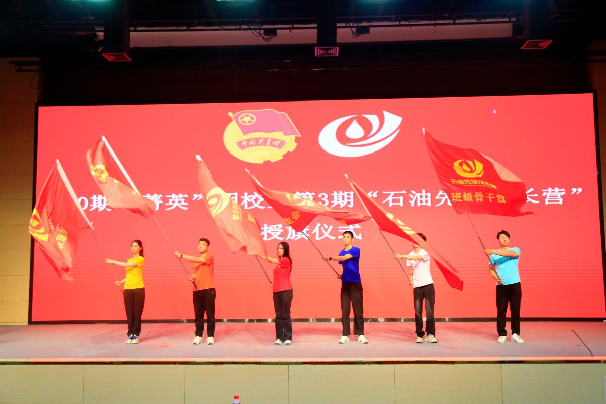 本次团校培训将理论授课与实习实践相结合,后续还将设置素质拓展、学习研讨和调研实践等环节,覆盖整个学年,让同学们在工作、学习中勇担重任,在成长成才路上坚定前行,让青春为中国式现代化挺膺担当。开班仪式上,周学智为上一期团校优秀营员代表颁奖,并为第40期“菁英”团校暨第3期“石油先锋成长营”各分营授旗。