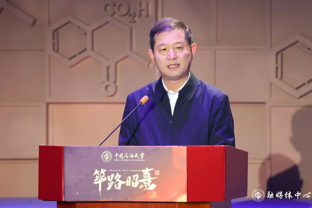 王同奇在致辞中代表学校向莅临现场的领导、嘉宾表示热烈的欢迎,向长期以来关心支持学校事业的上级单位、地方单位、能源企业及兄弟高校等表示衷心的感谢,对精心筹备演出的23名演员、导演团队、制作团队和服务保障志愿者表示肯定。他表示,排演话剧《筚路昭熹》是学校认真贯彻落实全国教育大会精神,传承弘扬科学家精神、教育家精神,多举措落实“时代新人铸魂工程”的重要举措,是学校精心打造的一堂“美育思政课”。曹本熹先生是中国石油大学创校功勋,此次大师剧以曹先生生平为蓝本,充分挖掘校史的思政元素,讲好“大先生”的感人故事,进一步提升学校思政工作、教师工作、美育工作等水平和质量,引导全校师生在建设教育强国新征程中实干笃行,书写新时代建设能源领域特色鲜明、世界一流研究型大学的崭新篇章。