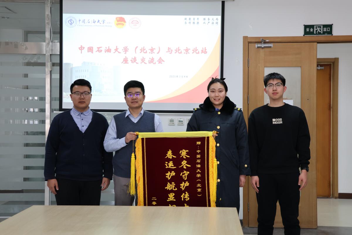 近日,共青团中国铁路北京局集团有限公司委员会向中国石油大学(北京)发来感谢信,对学校在2025年春运期间组织志愿者参与服务保障工作表示感谢。北京北站团委书记魏玉来中石大开展座谈交流,并向学校赠送“寒冬守护传大爱,春运护航显担当”锦旗。学校团委负责人及学校志愿服务工作负责同志参加座谈。