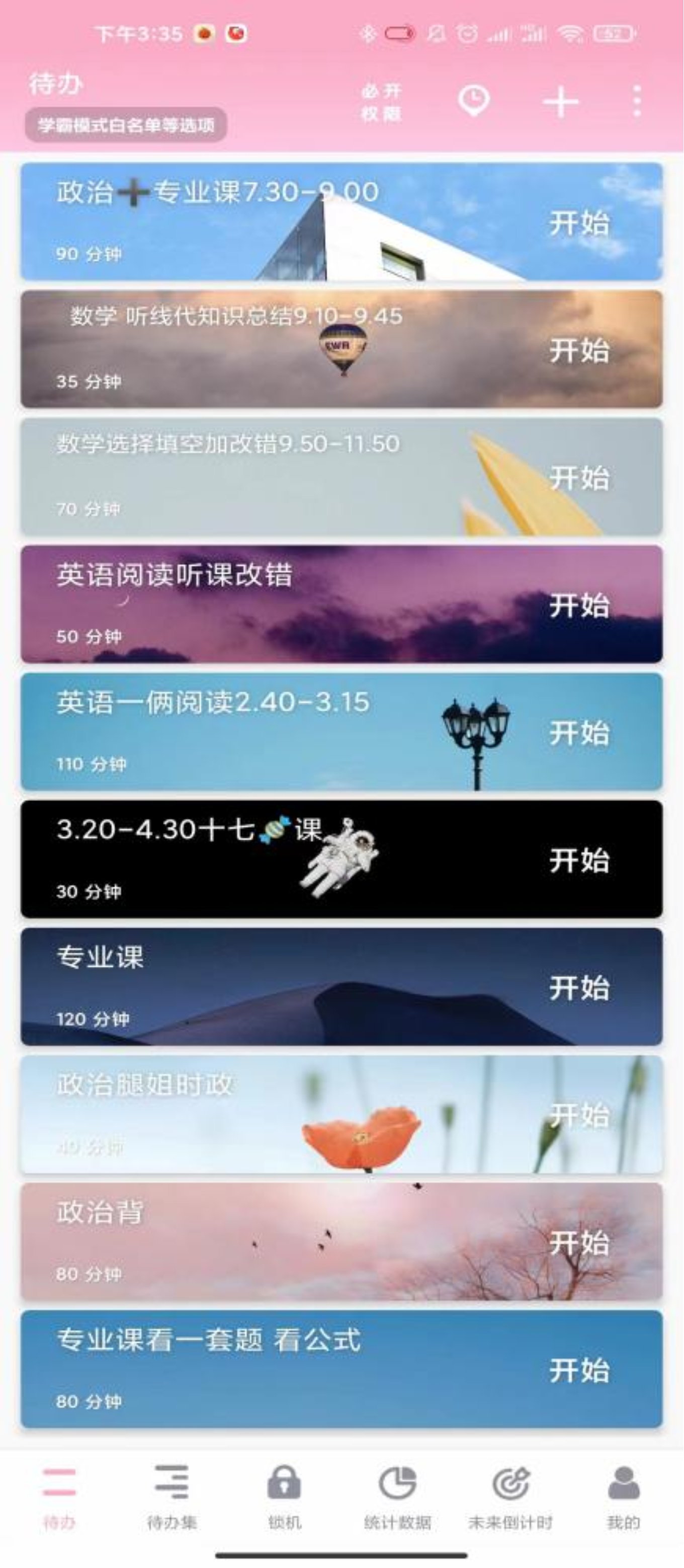 2.要每天制定自己的学习安排,按学习安排走,不要没有目标一盘散沙。可以用一下番茄TODO这个软件。