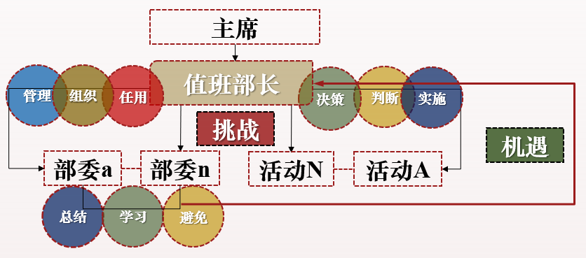 为促进部门间合作,提高整体服务质量,研会设置轮岗部长工作制度,每位成员都有机会作为“负责人”,全方位提升自身工作能力;另外实行考核计分制度,从会议考勤、活动参与、工作质量等多方面对成员进行综合评价,公正公开,同时提升部门工作热情。