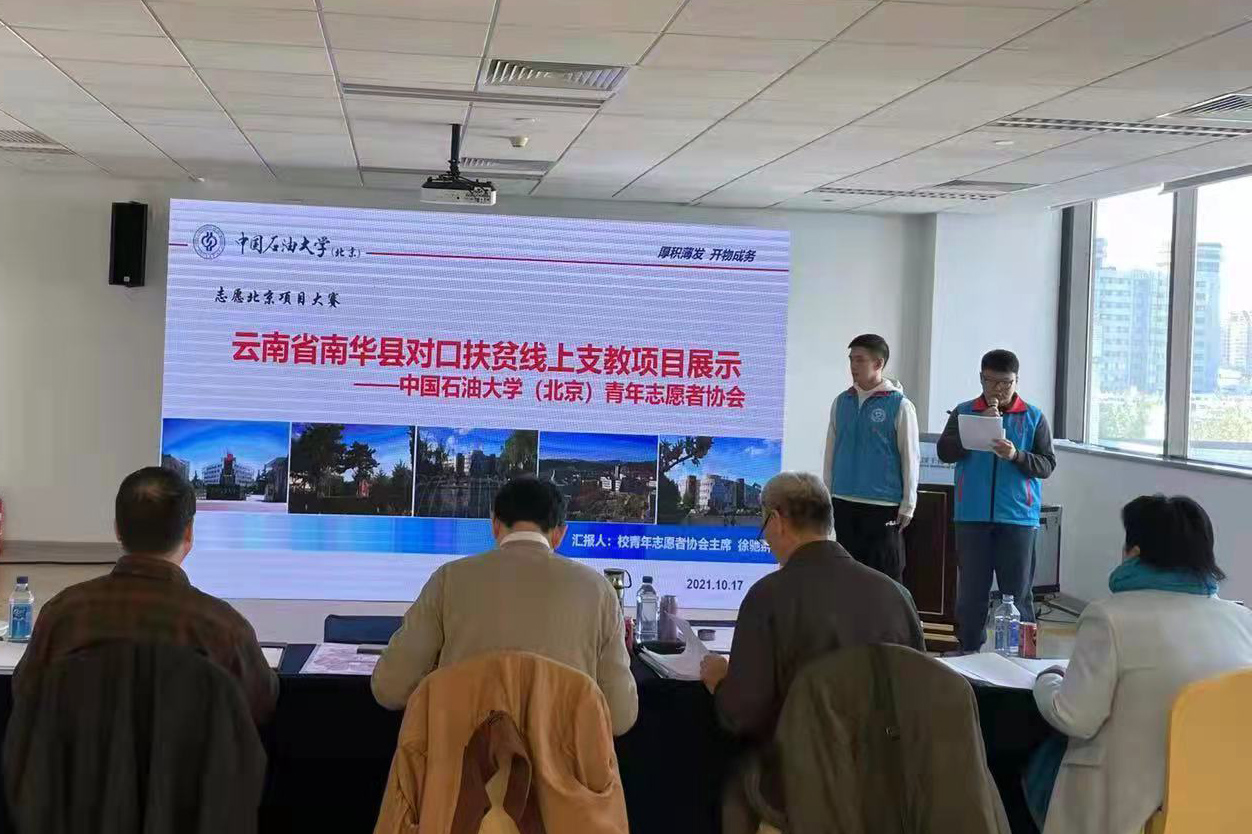 10月25日,由团中央青年志愿者行动指导中心、中共北京市委宣传部指导,共青团北京市委员会、北京市志愿服务联合会等单位联合主办的2021年首都志愿服务项目大赛决赛落下帷幕。中国石油大学(北京)青年志愿者协会对口云南省南华县线上支教项目经过初赛、复赛、决赛等环节,最终从全市767个项目中脱颖而出,获评铜奖。