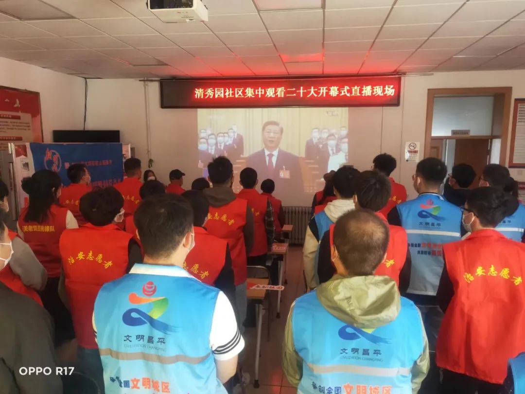 2022年10月16日上午十点,举世瞩目的中国共产党第二十次全国代表大会在北京人民大会堂隆重开幕。化工22-1团支部全体成员和清秀园社区两委干部、共青团员、辖区在职党员、新时代文明实践志愿者、集中观看二十大开幕式。