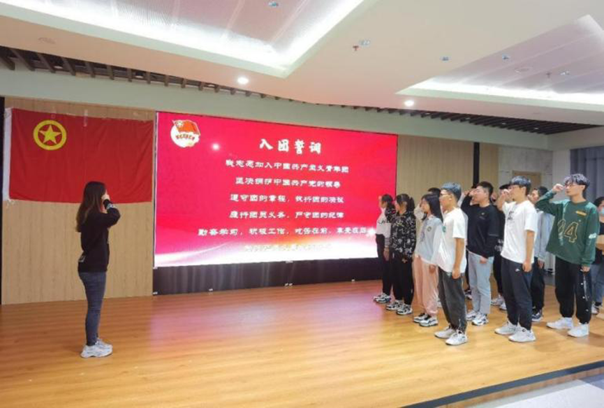 随后,由团员代表刘思彤带领全体团员重温入团誓词仪式,熟悉又庄严的誓词提醒着在场的每一位团员,铭记团员使命,不忘入团初心。宣誓结束后,信息学院团委委员苏星源进行团校管理规定教育,详细介绍了培训内容、考核方式和纪律要求。