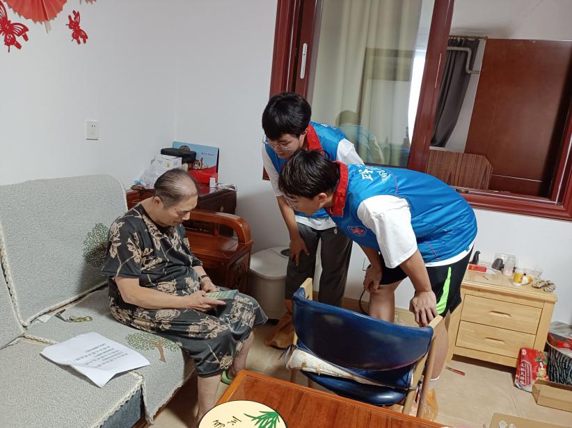 “萤火探兴”实践团队协助社区打造“乐享夕阳·暖心相伴”志愿服务新品牌,团队成员和社区工作人员一起入户为老人提供服务,从取快递到打扫卫生,从帮助老人使用电子产品到陪伴聊天,传递对老年人的关爱。在实践团与居委会的联动下,实践团成员采访了社区职工、军嫂、老党员等各类群体代表,并且录制视频做成报道推送进行宣传,尝试打造“讲好社区故事”文化宣传品牌。