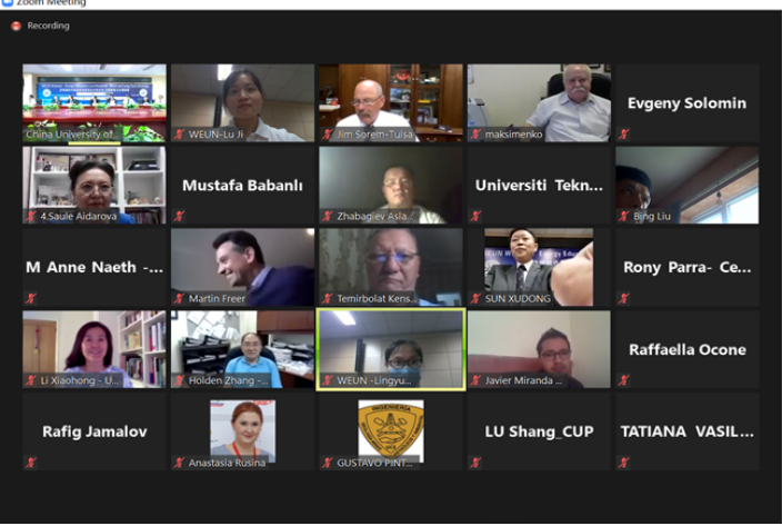 中石大于2018年9月22日发起成立世界能源大学联盟。联盟由能源领域在研究、创新、教育和国际化方面拥有共同战略目标的研究型大学自愿组成,目前有来自17个国家的32所成员高校。中石大在首届主席单位任职期间(2018年至2022年)认真履职,克服疫情带来的重重困难,卓有成效地完成多项工作,助力联盟成为世界能源教育领域的重要交流合作平台。自成立以来,联盟先后完成了机构设置、章程签署、网站建设和标志发布,各项工作发展步入正轨。联盟成员高校间交流互访、促进深度合作,举办暑期学校和中石大克拉玛依校区地质实习等学生活动,召开“后疫情时代能源高等教育及科研走向”“氢能的未来”等多场国际热点论坛和学术沙龙,联合组织开展“能源与气候变化国际大赛”和“金砖国家青年能源峰会暨国际能源青年大会”等大型国际活动,成立三个国际学术组织,发布刊物十余万字,4所国内外高水平大学加入联盟,联盟影响力持续扩大。