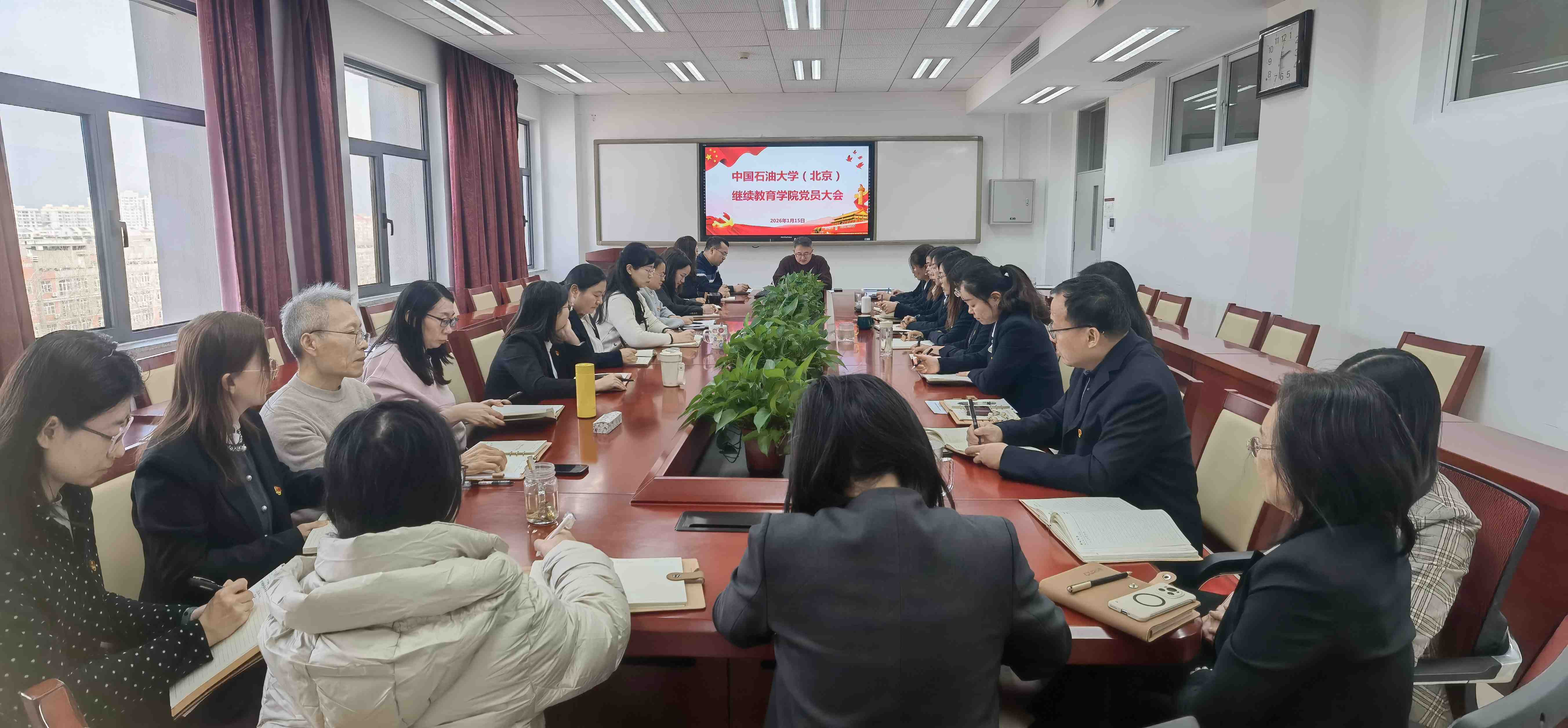 2026年1月15日,中共中国石油大学(北京)继续教育学院党总支委员会换届选举党员大会在东校区教学楼802教室隆重举行。大会听取并审议通过了上一届党总支题为《不忘初心、牢记使命,奋力谱写新时代继续教育高质量发展新篇章》的工作报告。