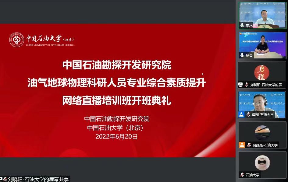 2022年6月20日,由我校网络与继续教育学院承办的“中国石油勘探开发研究院油气地球物理科研人员专业综合素质提升网络直播培训班通过网络直播顺利开班。