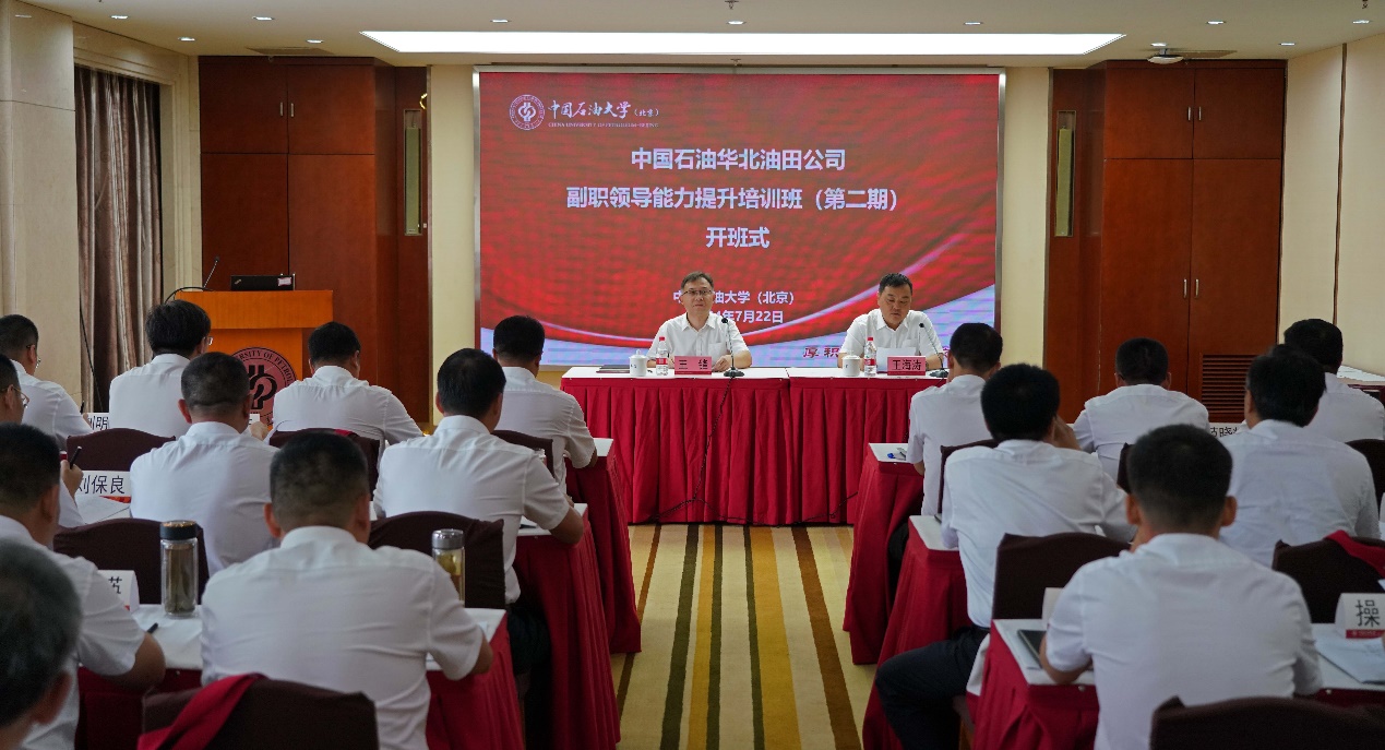 7月22日,中国石油华北油田公司与我校联合举办的“华北油田公司副职领导能力提升培训班(第二期)”在我校举行开班式,华北油田公司副总经理王锋出席开班式并做重要讲话,开班式由华北油田公司人力资源部经理、党委组织部部长王海涛主持。