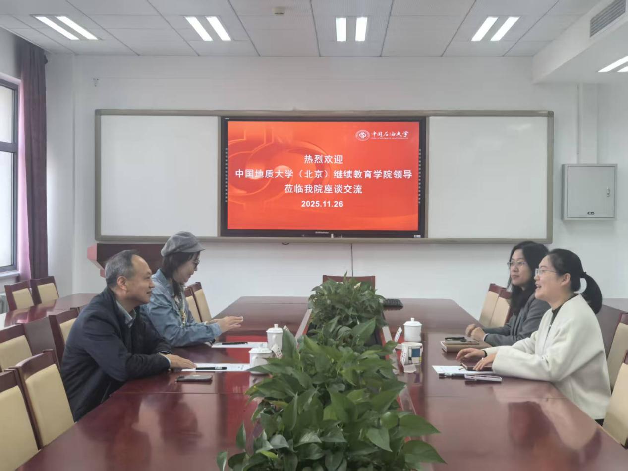 11 月 26 日上午,中国地质大学(北京)继续教育学院书记张忠军、国际培训部主任李丽萍一行来访,就留学培训项目展开调研座谈。学院副院长刘一凝、出国留学教育中心主任万璐出席此次座谈。