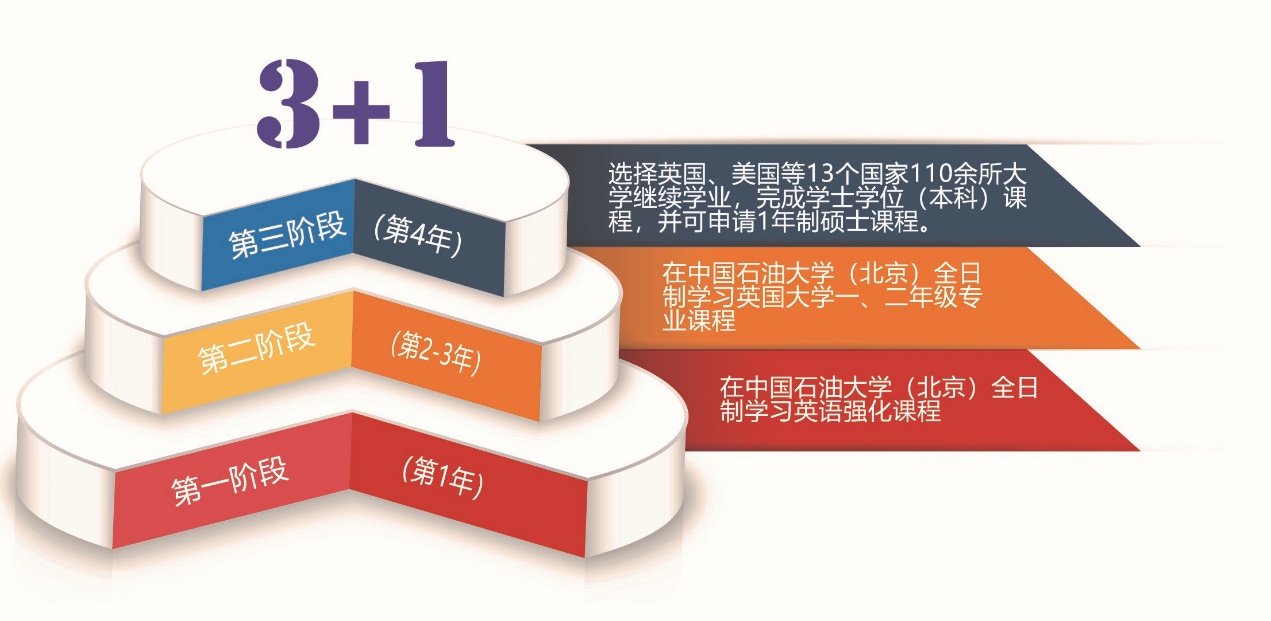 中国石油大学(北京)3+1国际本科项目(以下简称3+1项目)是教育部留学服务中心于2003年引进的中英政府间跨境教育合作项目,在中国已发展了18年,培养了数万名优秀人才,是中英两国高等教育合作的重要组成部分,并分别于2009年和2017年写入“中英联合声明“。