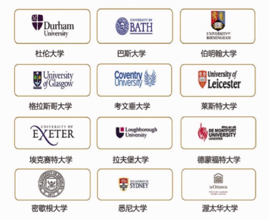 截止2021年,3+1项目已与全球13个国家110余所高校建立了升学合作,学生在校完成国内学业后,可根据自己的意愿及合作大学的入学要求,自主选择就读与我校签订正式协议的合作大学及合作专业。部分国外大学如下: